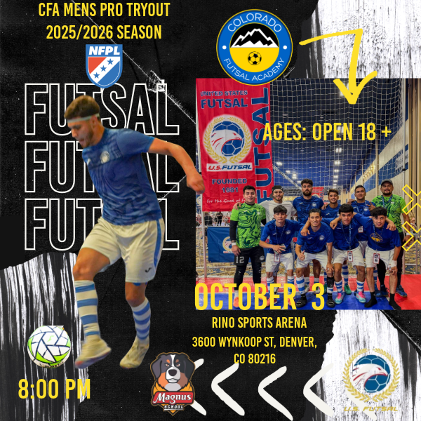 Colorado Futsal Academy is committed to provide top quality Futsal development programs and experiences for all participants and their families. Our passion and knowledge of futsal and soccer has given us the chance to live our lives in a unique manner. We play it, coach it, talk about it, watch it, breathe it, and simply have the love and passion for the game. This will be our 4th season competing at national level, we are currently playing in the NATIONAL FUTSAL PREMIER LEAGUE and also compete in the U. S. FUTSAL NATIONALS, and a few other events in our region, we are looking to reinforce our team to compete in the highest level possible, join us on this adventure.